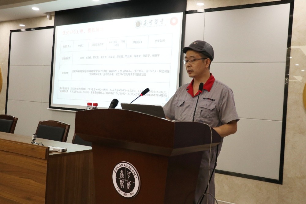 為推進(jìn)落實(shí)在鑫可20周年慶典上發(fā)布的“反浪費(fèi)、降成本”行動(dòng)方案,2023年7月5日晚,公司在鑫可學(xué)堂舉行了“反浪費(fèi),降成本”十大課題發(fā)布會(huì)暨《IE八大浪費(fèi)》培訓(xùn)活動(dòng)。公司常務(wù)副總經(jīng)理馬強(qiáng)、副總經(jīng)理兼經(jīng)營(yíng)管理委員會(huì)副主任陳光耀、副總經(jīng)理龔峰、財(cái)務(wù)總監(jiān)郭蓮芳、行政總監(jiān)黃建宇、各部門(mén)負(fù)責(zé)人及各降本課題組成員近60人參加了本次發(fā)布會(huì),副總經(jīng)理陳光耀主持了本次發(fā)布會(huì)。